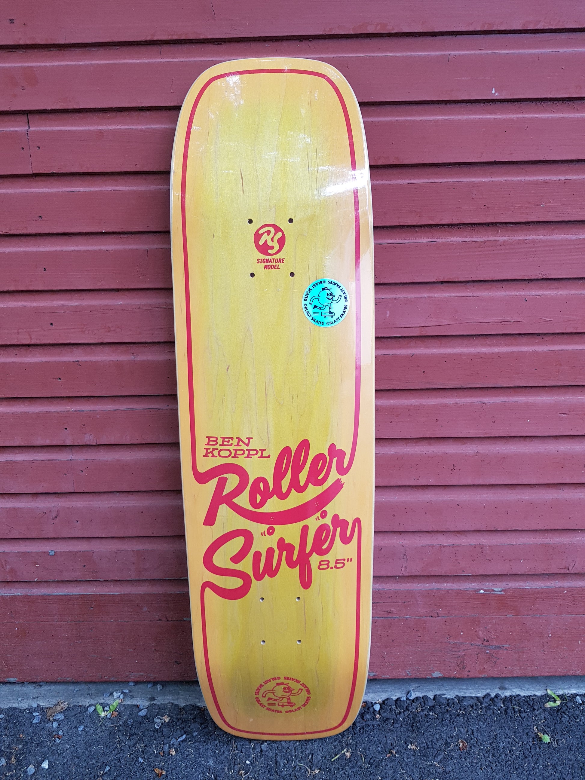 Ben Koppl's Roller Surfer deck is made on his signature shape for Blast and features a squared nose and tail for more control as well as a shorter wheelbase for a quick responsive skate.
